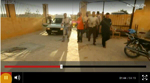 Sur la vidéo de BBC, Crise syrienne: victimes de la bombe incendiaires « Comme des morts vivants », on constate qu’il y a une image montrant une chaussure, puis une autre, au milieu des décombres.